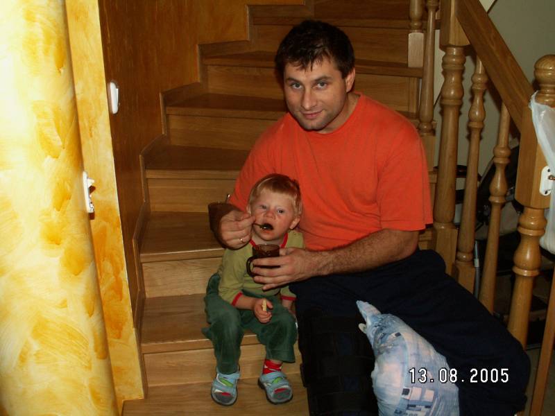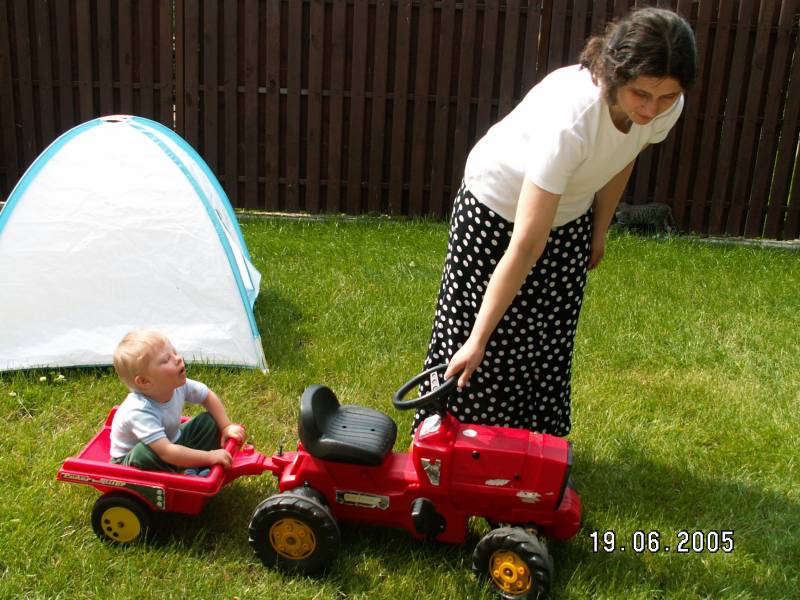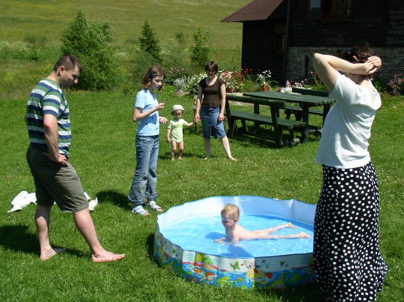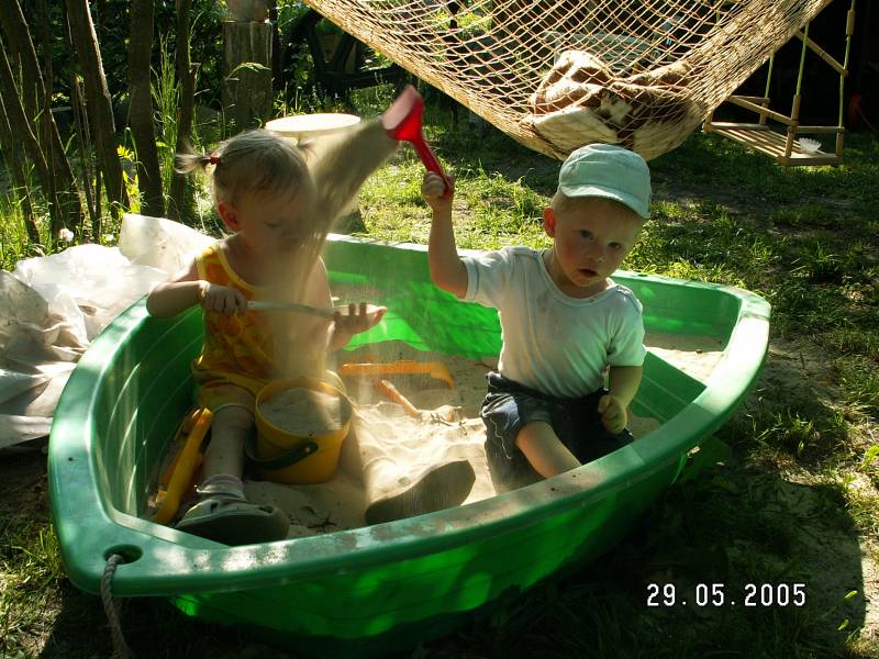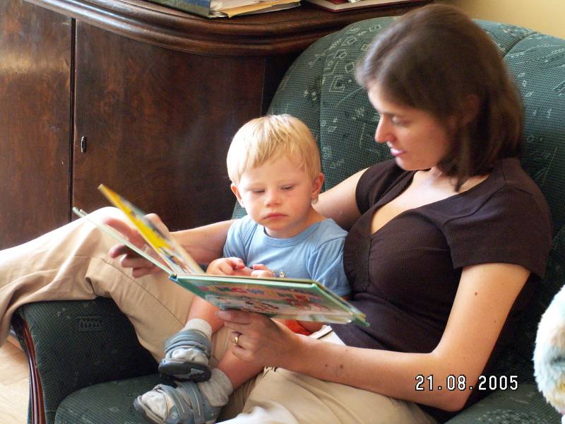 Lato 2005 Zdjęcia z wakacji oraz kilka z domu Marek z koleżanką w piaskownicy. Piknik IBM - Marek w dmuchanym ringu. Piknik IBM - Marek na Harleyu. Marek i Ania w oczekiwaniu na zdjęcie Marek na traktorze w naszym ogródku. Po dogoterapii dobrze się jest wymoczyć. Izby 2005 : Z przyjemnością znowu odwozimy Anię na kolonię. Jadalnia w Izbach. Chlapanie w ogródku. Uwielbiam kisiel. Ciocia Ewcia czyta książkę. Wrzesień 2005 : Odwiedziny Dziubów.